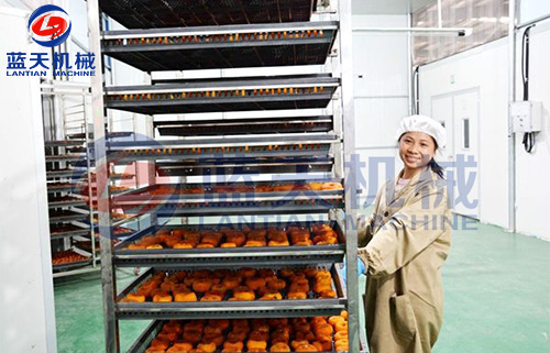 柿餅是我國(guó)的傳統(tǒng)食品,加工歷史悠久。柿餅營(yíng)養(yǎng)豐富,口味甘美,有清熱瀉火和治療多鐘疾患的作用,深受國(guó)內(nèi)消費(fèi)者歡迎,并銷往日本。韓國(guó)等國(guó)。柿餅的口感主要取決于含水量,因此如何使柿餅含水量保持在一定的水平而又不能霉變是柿餅烘干機(jī)加工工藝中需要解決的問(wèn)題。