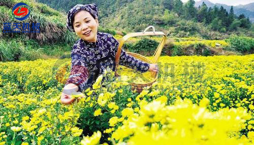 第一步——采摘,帶好竹筐,采摘金絲皇菊市注意一手夾住花瓣,一手輕輕扶助花枝,稍用力一掰,金絲皇菊便會(huì)脫落。