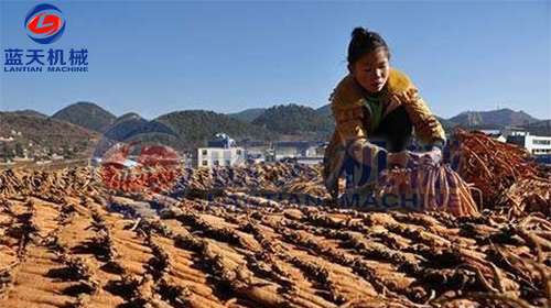 黨參曬至根條發(fā)軟,折彎不斷時,趁熱在地方順勢旋轉(zhuǎn)揉搓3-5分鐘,使根條更柔軟,并脫除部分根毛、泥土、就地繼續(xù)晾曬。倒胚后,曬至根條溫?zé)?30-40度),然后上堆,覆蓋塑料膜繼續(xù)悶曬,提高根條溫度及柔軟程度。