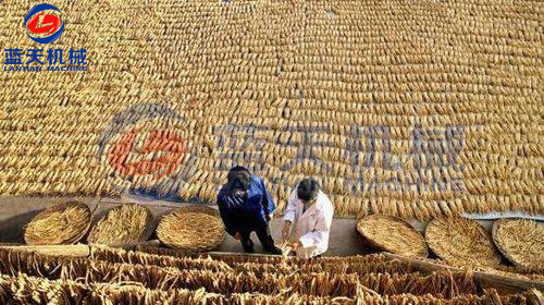 推進(jìn)黨參烘干房內(nèi)進(jìn)行烘制。將搓理?xiàng)l后的黨參、均勻鋪放于竹簾內(nèi),分層擺放,蘆頭部分蓋前排的尾須部分,呈覆瓦狀,以便頭尾干燥均勻,保持40-50攝氏度進(jìn)行烘干。