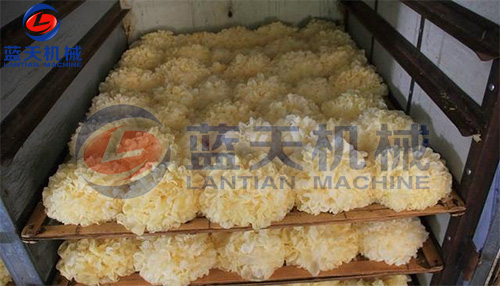 如果銀耳采收的時候天氣睛好,藍(lán)天機(jī)械強(qiáng)烈建議您采用日曬與銀耳烘干機(jī)兩者相結(jié)合,這樣制作出來的干銀耳香氣高,品相好,同時烘干成本更好。
