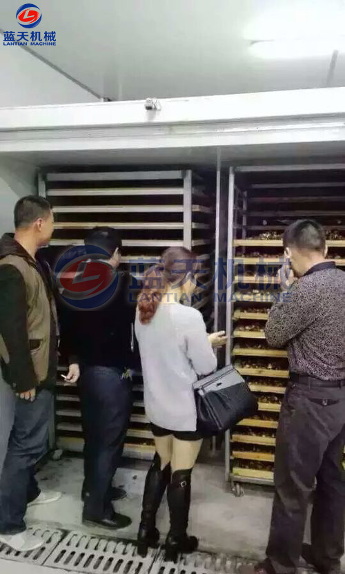 總時間控制在四個小時以內(nèi),一般會分四段進(jìn)行干燥。一般在第一個區(qū)段設(shè)置的時間在3小時左右,設(shè)置的溫度可以上到35℃,濕度控制在70%以內(nèi)。羊肚菌烘干要求形狀要飽滿,羊肚菌中間是空的,中間不能塌掉,塌掉就不值錢了,通過3個小時進(jìn)行一個低溫的定性定色。