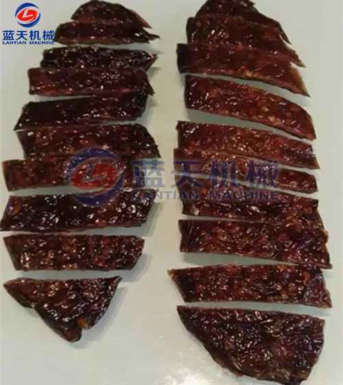 9.配料 將半成品切成長(zhǎng)4厘米、寬6.5厘米的塊。按100公斤茄瓣加食鹽2公斤、腌過(guò)的紅辣椒15——20公斤、豆皮35——40公斤的比例,混拌均勻(紅辣椒要切成每片約1厘米的塊)。然后逐層裝入泡菜壇中,邊裝邊逐層搗塞結(jié)實(shí),盡量使壇內(nèi)不透空氣。裝滿后,蓋上蓋子,并在壇口周?chē)乃劾锕嗌纤詈笥每弁肟墼谒壑?,以防止外界空氣進(jìn)入菜壇。經(jīng)15天左右發(fā)酵,即為成品茄干。