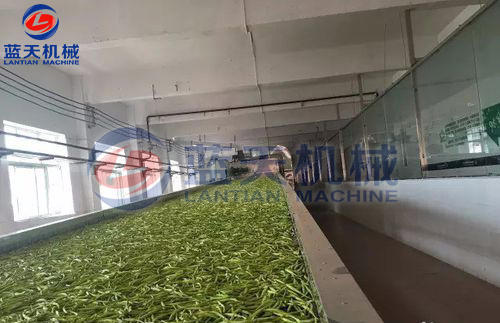 預(yù)煮處理后的蔬菜應(yīng)立即進(jìn)行冷卻(一般采用冷水沖淋),使其迅速降至常溫。冷卻后,為縮短烘干時間,可用離心機甩水,也可用簡易手工方法壓瀝,待水瀝盡后,就可攤開稍加涼曬,以備裝盤烘烤。