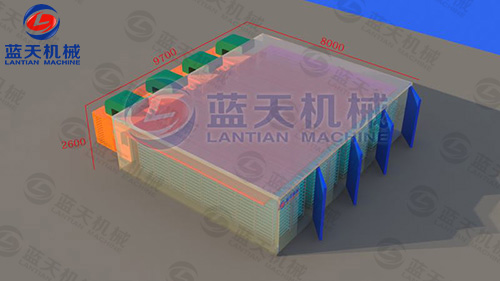現(xiàn)在新型的紅糖烘干機使用空氣能技術(shù),高出風溫度為75℃,可以大大減小生產(chǎn)周期。紅糖帶烘干房建議使用聚氨酯材料制作的烘干房,如果是用傳統(tǒng)磚塊徹成的烘干房需要對內(nèi)墻進行保溫處理。風機必須使用高溫高濕的對流風機??刂葡到y(tǒng)對烘干房的溫度和濕度進行嚴格控制。保證每一批次的紅糖烘干質(zhì)量穩(wěn)定。