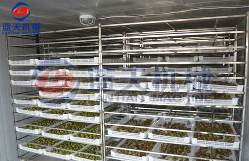 如為整顆烘干,需要的時(shí)間更長(zhǎng)一些,先將果子均勻的鋪放在架子車上,推入無(wú)花果烘干機(jī)干燥25-30小時(shí)后,再推出烘房外陰涼的地方放置一天,再推入烘房?jī)?nèi)進(jìn)行第二次的烘干。無(wú)花果烘干機(jī)一天的烘干量視機(jī)型規(guī)格決定,最少的以600-800 斤一個(gè)批次,最多的2000斤一個(gè)批次,10000斤甚至更大產(chǎn)能則考慮對(duì)吹及組合方式即可。