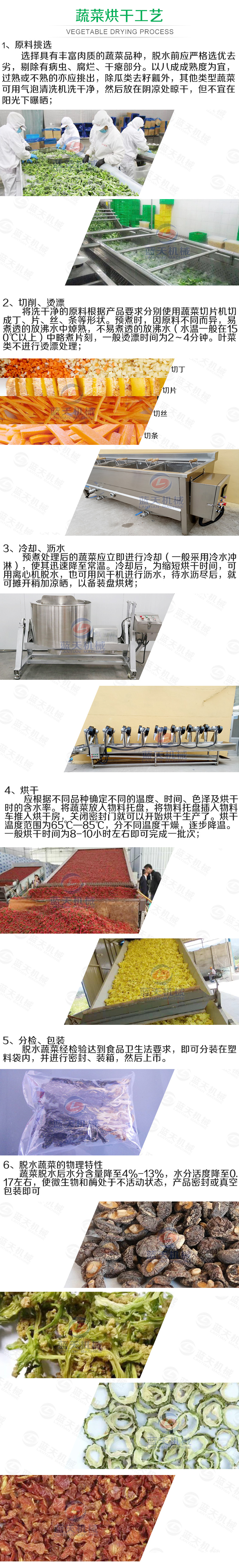 二、要烘干的蔬菜通過提升機(jī)將物料提升到輸送帶,輸送帶通過一個(gè)或幾個(gè)加熱單元組成的通道,每個(gè)加熱單元均配有空氣加熱和循環(huán)系統(tǒng),每一個(gè)通道有一個(gè)或幾個(gè)排濕系統(tǒng),在輸送帶通過時(shí),熱空氣從上往下或從下往上通過輸送帶上的蔬菜,從而使蔬菜能均勻干燥烘干。