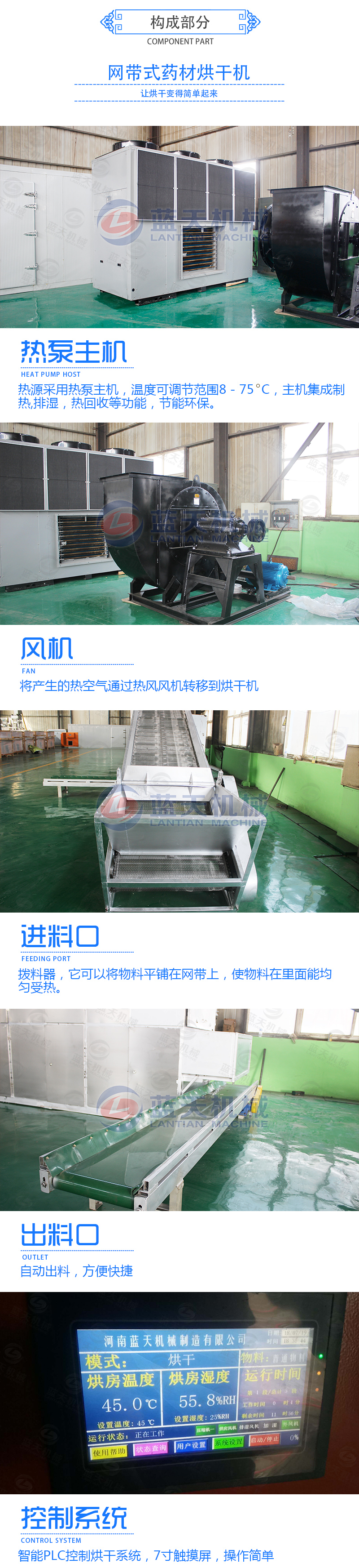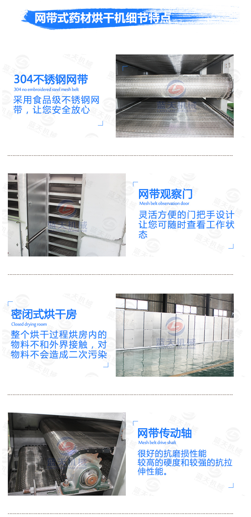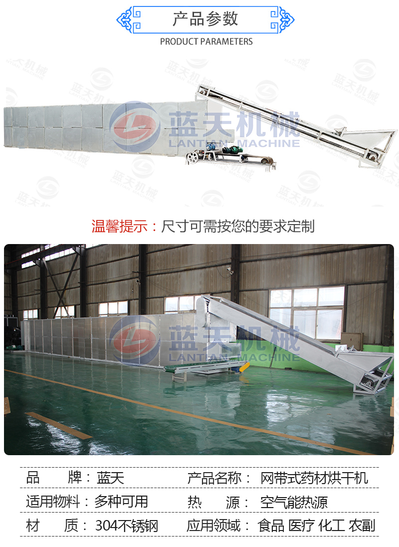 【藍(lán)天網(wǎng)帶式藥材烘干機(jī):】