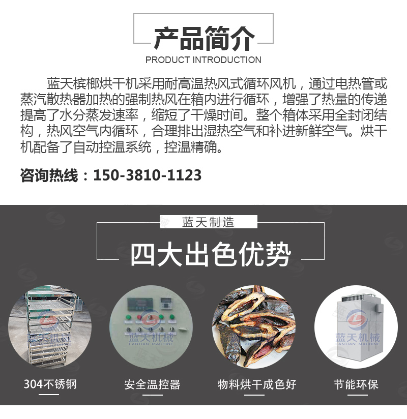 4、檳榔烘干機(jī)烘干過(guò)程可靠,烘干過(guò)程無(wú)過(guò)熱或者燃燒危險(xiǎn)。