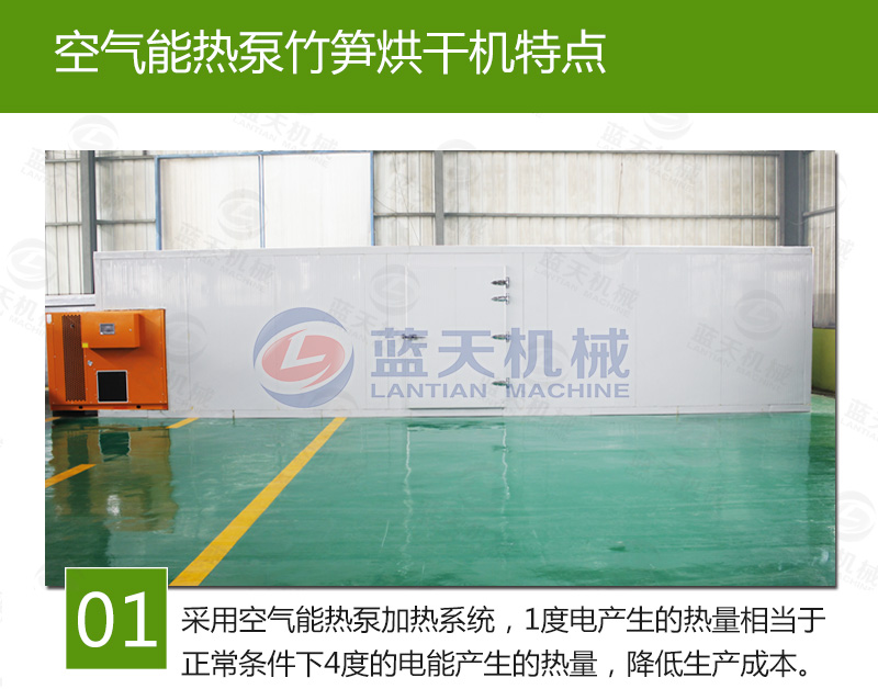 節(jié)能效率高、不受天氣限制:空氣源熱泵竹筍烘干機(jī)的運(yùn)行費(fèi)用只有燃油干燥機(jī)的40%,燃煤干燥機(jī)的60%和電熱加熱設(shè)備的30%,竹筍烘干機(jī)價格大大節(jié)省了烘干的成本為企業(yè)創(chuàng)造了直接的利潤。安裝竹筍烘干機(jī)只需要一塊占地不大的平地面積就可以了,安裝操作簡易 。