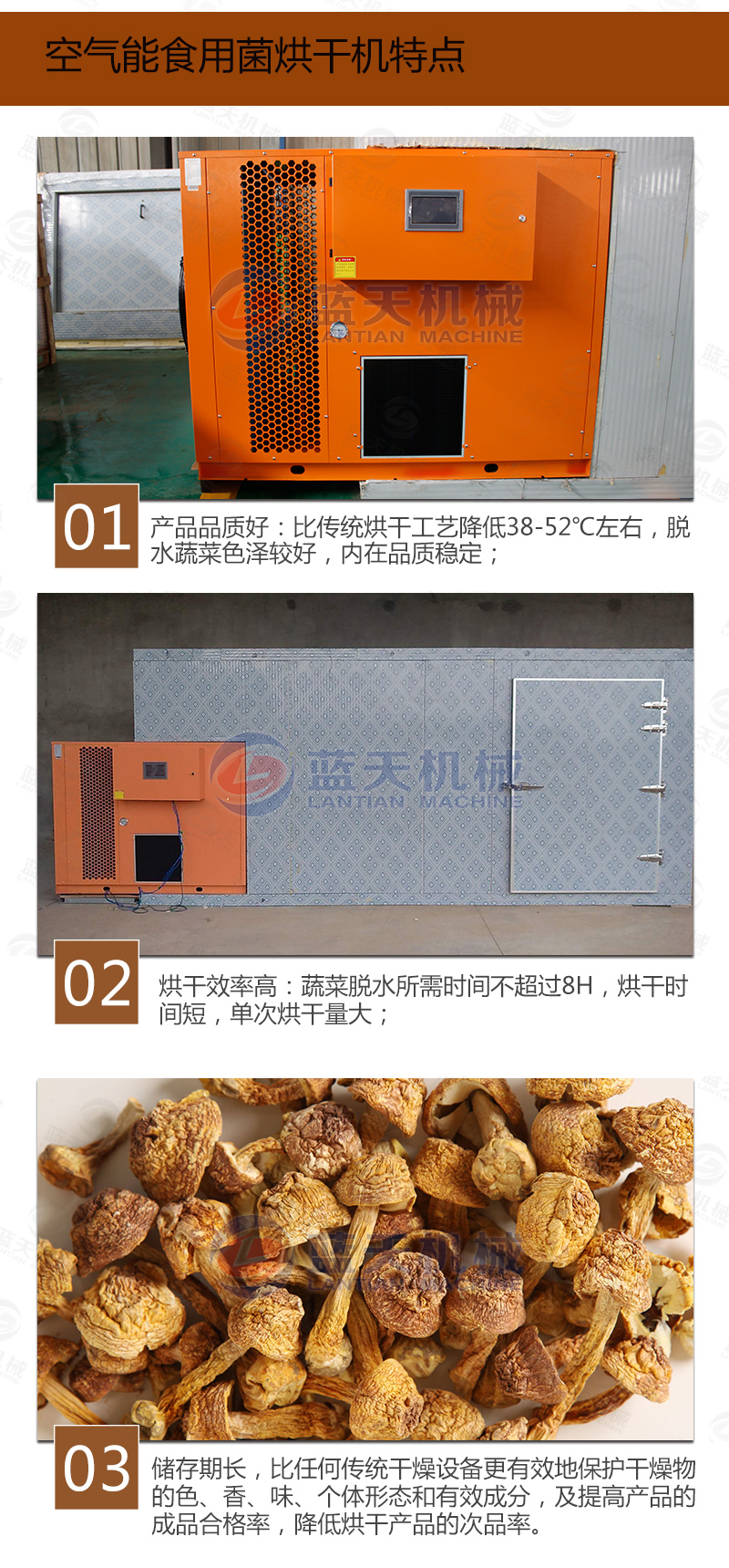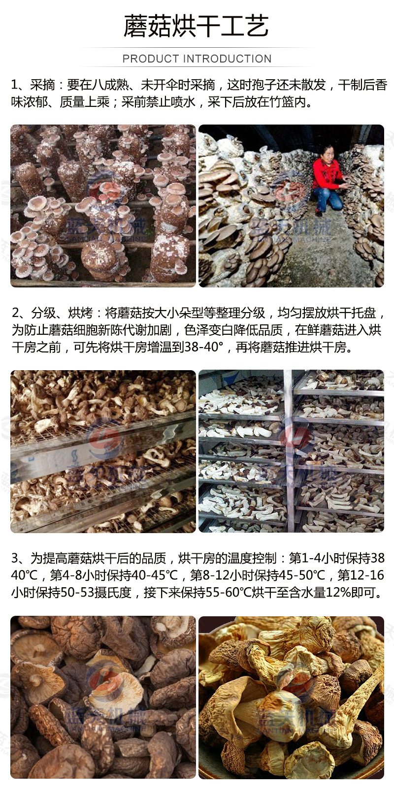 2、溫度不能超過65℃,否則易燒焦。(食用菌烘干房溫度不宜過高)