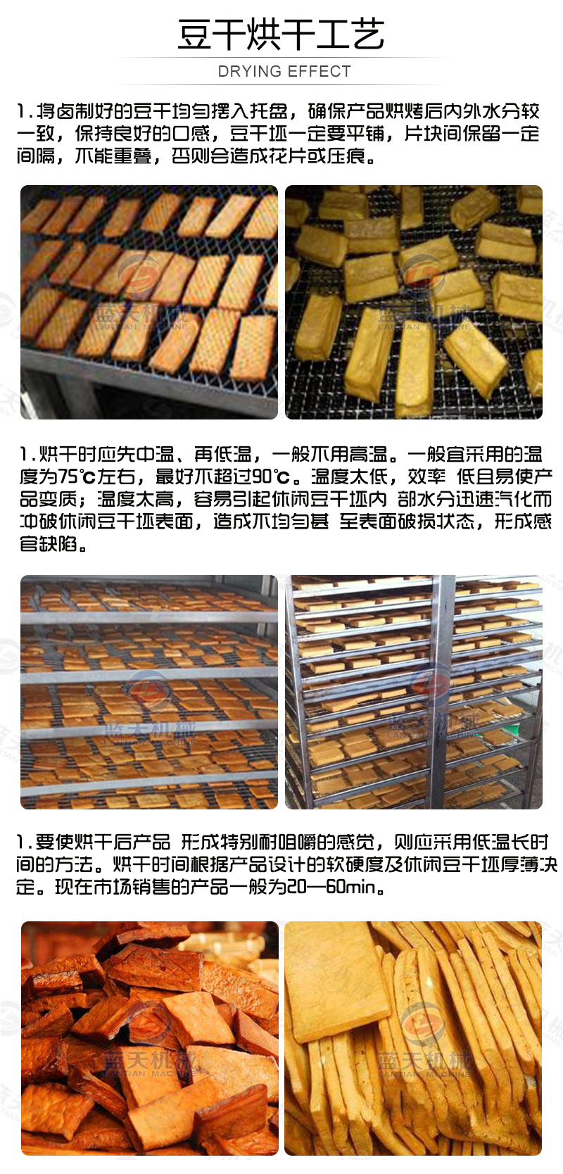 豆腐干烘干機之豆腐干烘干工藝: