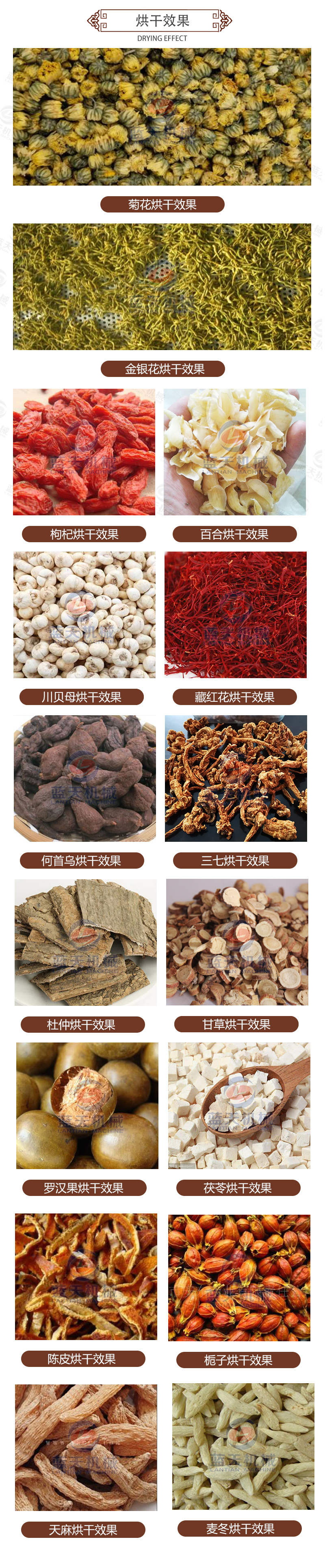 藥材烘干是為了排除水分,抑制酶的活動,防止有效成分分解,便于長期貯存?zhèn)溆谩K幉暮娓杉庸r應(yīng)盡量保持生藥的外觀、氣味和有效成分的含量不變。根據(jù)氣候、設(shè)備條件、藥材性質(zhì),選擇合適的藥材烘干機以及烘干工藝。